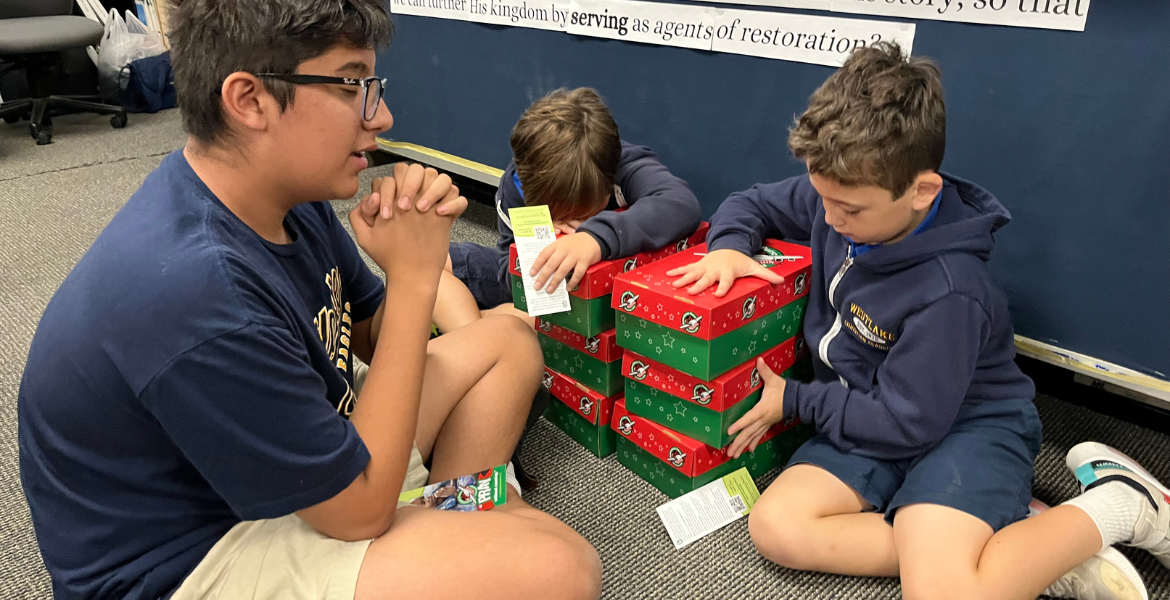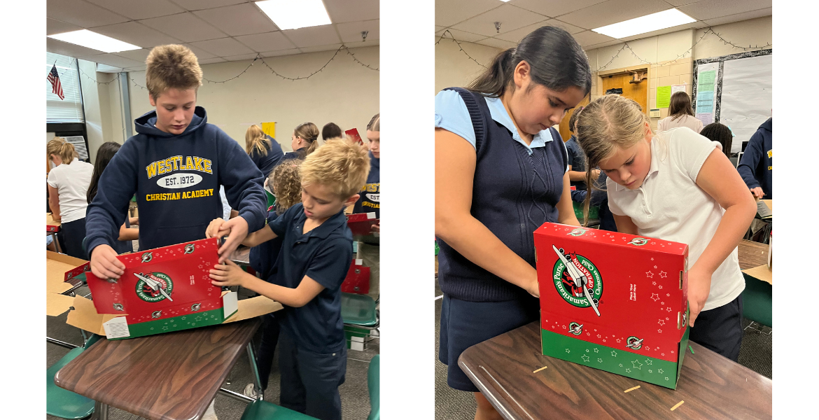 Sometimes our neighbors are far away, but we can still be image reflectors and love them well. This year, third grade is partnering with Mrs. Cook's 7th grade history class to serve as community builders and servant workers by packing shoeboxes for Operation Christmas Child. Each shoebox is filled with toys, school supplies, and self-care items like toothbrushes and washcloths.